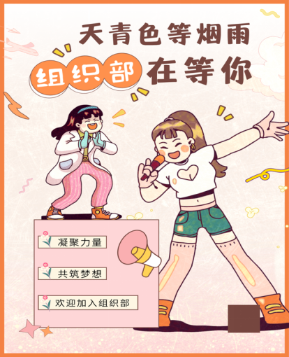 组织部是一个严谨的部门,同时也是学院团总支的核心部门,主要协助团委加强全院共青团思想建设、组织建设以及共青团干部培养和管理的重要职能部门,又红又专是我们部门的核心理念。