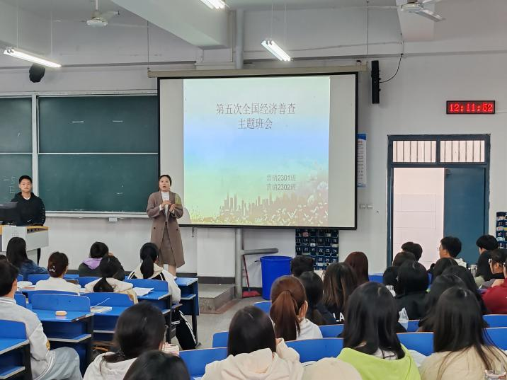 为切实做好第五次全国经济普查宣传活动,提升全体师生支持普查、配合普查、参与普查的意识,必赢76net线路官网开展第五次全国经济普查宣传工作,22级、23级辅导员开展主题班会宣传活动,向同学们认真介绍第五次全国经济普查的重要性和必要性,并解答各类疑问帮助同学们更好的了解政策、熟悉政策。