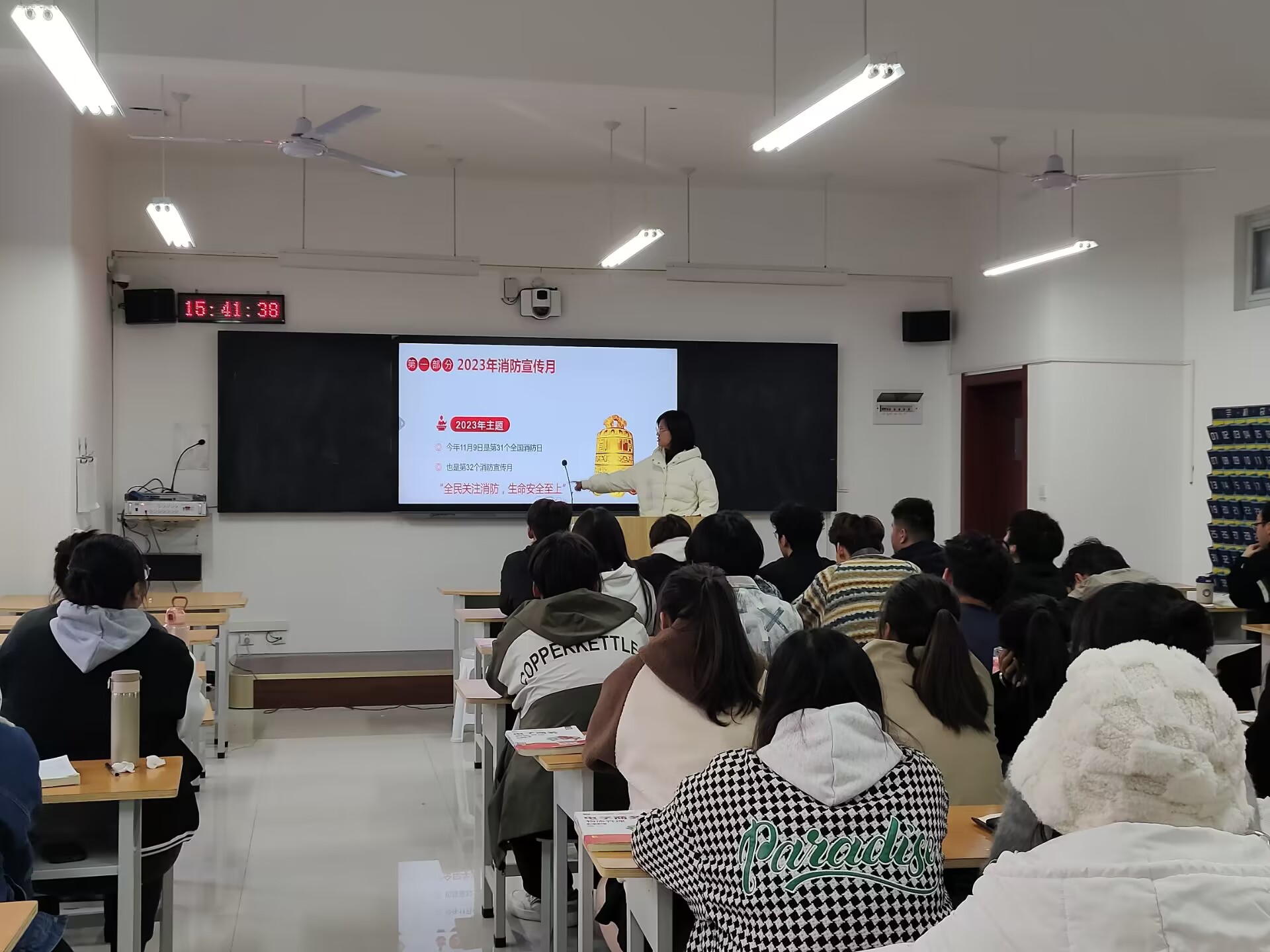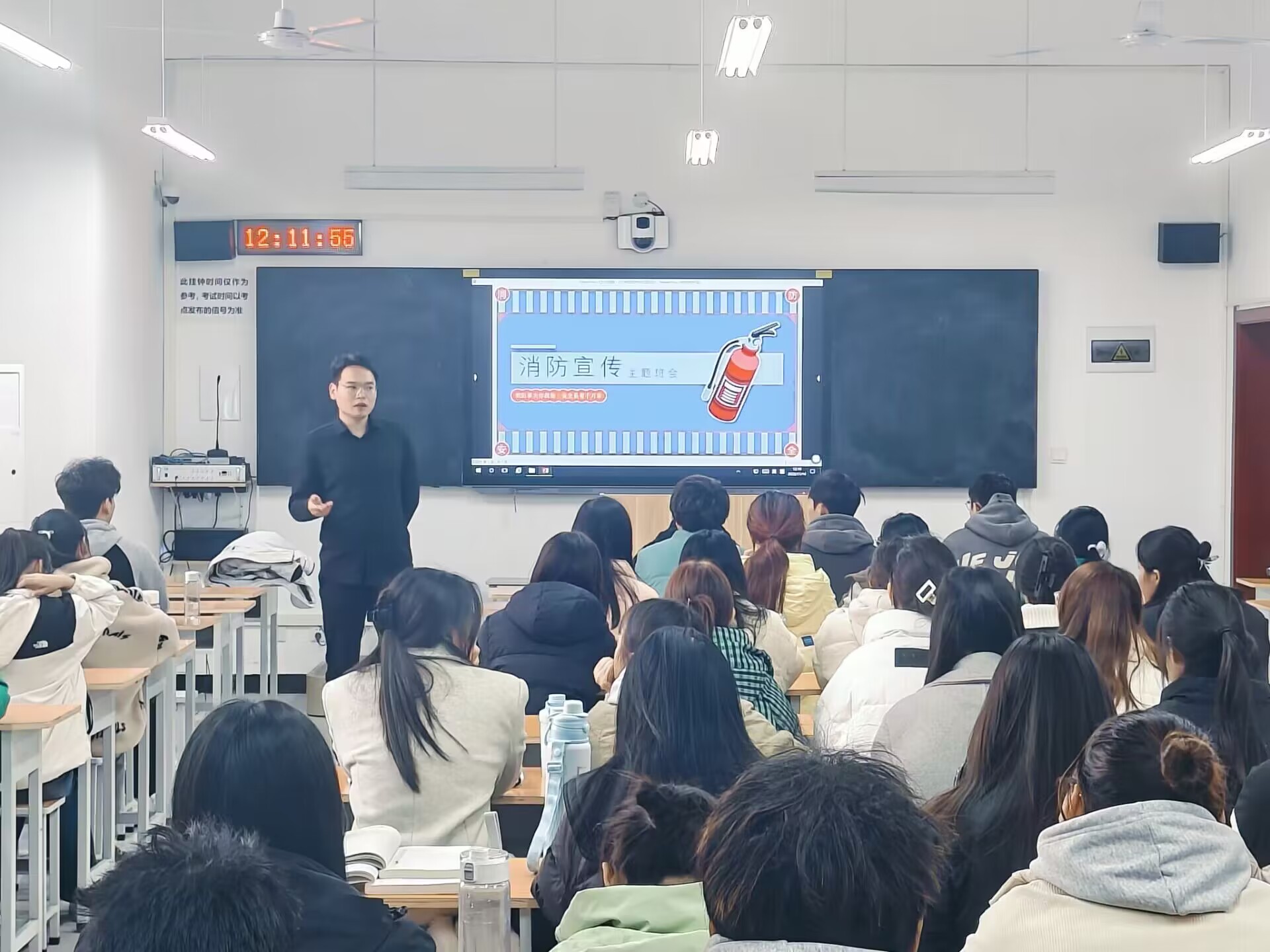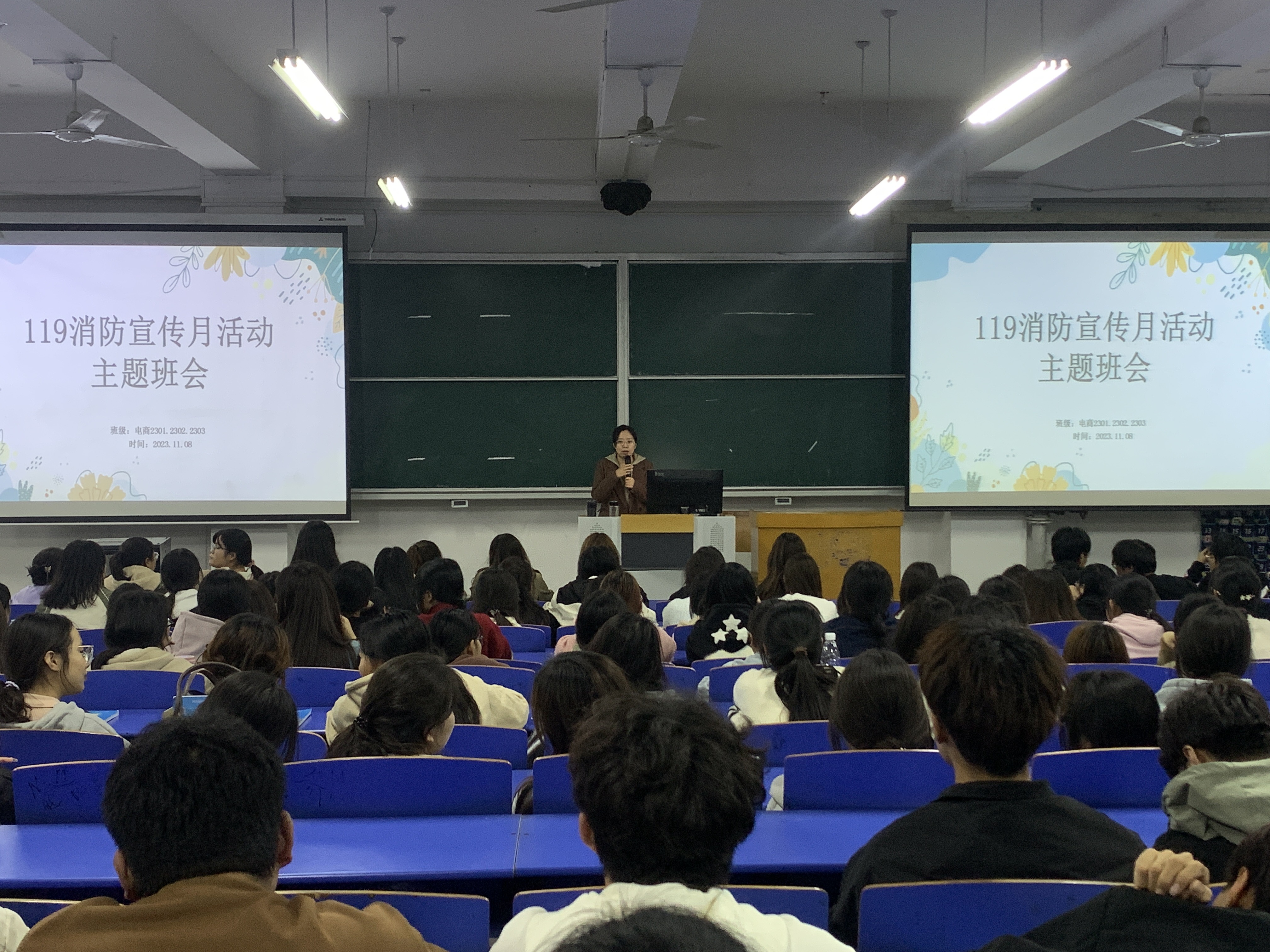 为进一步使同学们增强防灾减灾意识及应对突发事件的能力,11月1日至11月15日,各班辅导员和班长开展形式不一的主题班会。主题班会过程中,通过播放火灾警示片、幻灯片示例图片演示,图文并茂,从消防安全基本知识、宿舍消防安全事项到火灾后如何疏散逃生自救、如何正确报警以及灭火器的正确使用方法等内容进行共同分享,再一次提醒同学们安全在于防范。通过这次主题班会,所有同学都进一步增强了的防火意识和逃生自救常识,他们表示一定以“咬定青山不放松”的决心,进一步牢固安全底线。