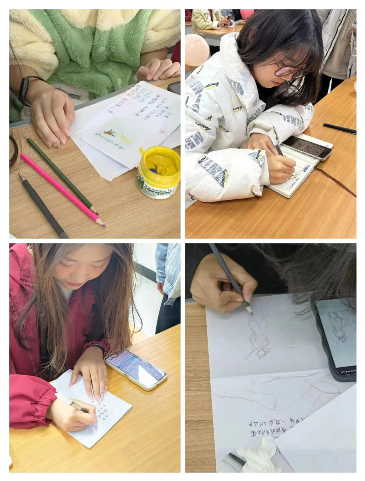 同学们抽取题目、现场作答。每位同学都参与其中,协作答题。现场气氛融洽、欢声笑语不断。
