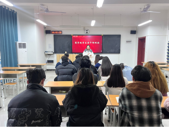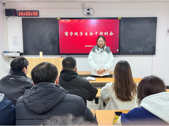 为进一步增强学院学生会干部自我管理和自我教育意识,提高学生会干部的工作能力和服务水平。2024年1月2日,必赢76net线路官网于开封校区B203教室召开学生会干部例会。本次例会由商学院团总支书记贺苗苗主持,学院学生会全体干部参会,主要对2023年学生会工作进行总结,并对寒假工作做出安排。