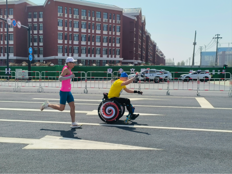 赛道中的运动员表情坚毅,在春意盎然的复兴大道上充分展现挑战自我、不怕困难的坚强意志。这种超越极限的体育精神让志愿者们深受震撼,大家纷纷表示要像他们一样,用不屈不挠的精神战胜未来将会出现的一切困难。