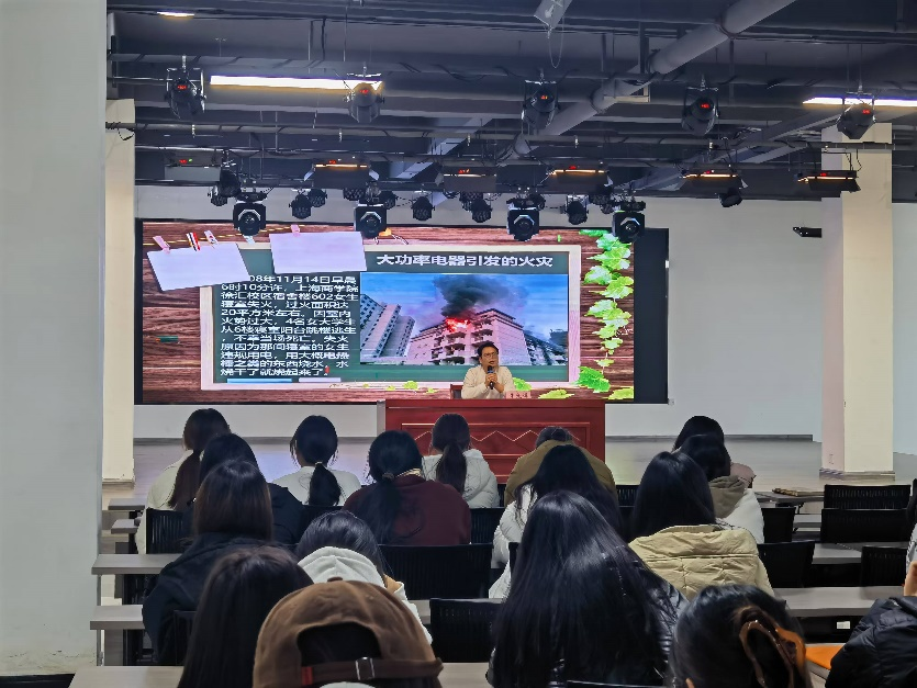讲座开始,乔光辉老师强调了宿舍安全的重要性,并积极呼吁全体宿舍长积极参与到宿舍安全的管理中来。随后,乔光辉老师通过一系列生动的案例,详细讲解了宿舍发生火灾的原因和预防措施,以此告诫学生们禁止在宿舍使用大功率电器、明火和乱接电线,因为这不仅危害了自己的人身安全,也危害了他人的人身安全。