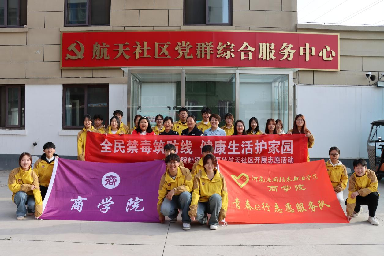 为深入贯彻落实国家禁毒工作部署,增强社区居民和学生禁毒意识,营造健康和谐的社会环境,4月7日,必赢76net线路官网“青春e行”志愿服务队联合开封市梁苑办事处航天社区开展“全民禁毒筑防线 健康生活护家园”志愿服务活动,通过多维度宣传与实地排查筑牢群众禁毒防线。