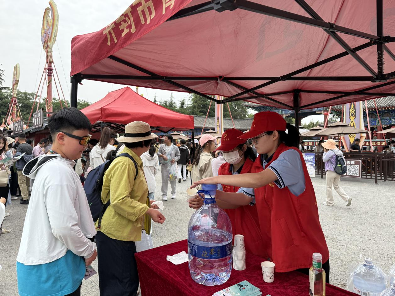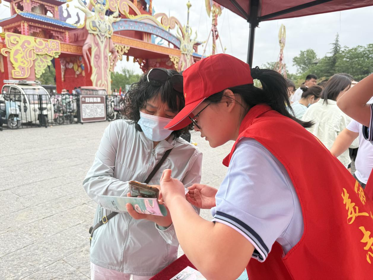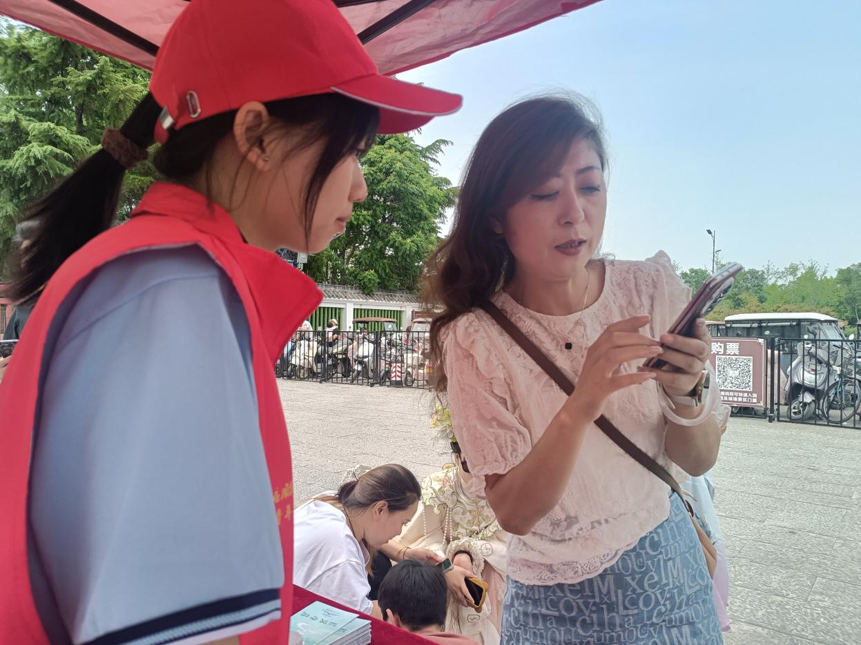 面对游客的各种需求,志愿者们始终保持着热情的态度和灿烂的笑容。当遇到外地游客对景区周边交通不熟悉时,志愿者们不仅详细告知公交、打车等出行方式,还贴心地在手机地图上标注路线;当遇到口渴的游客时,志愿者们也会积极主动地帮忙。志愿者们专业、细致的服务,赢得了游客们的一致好评。