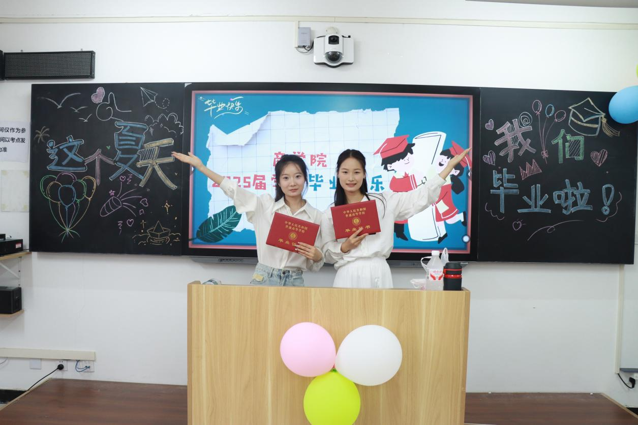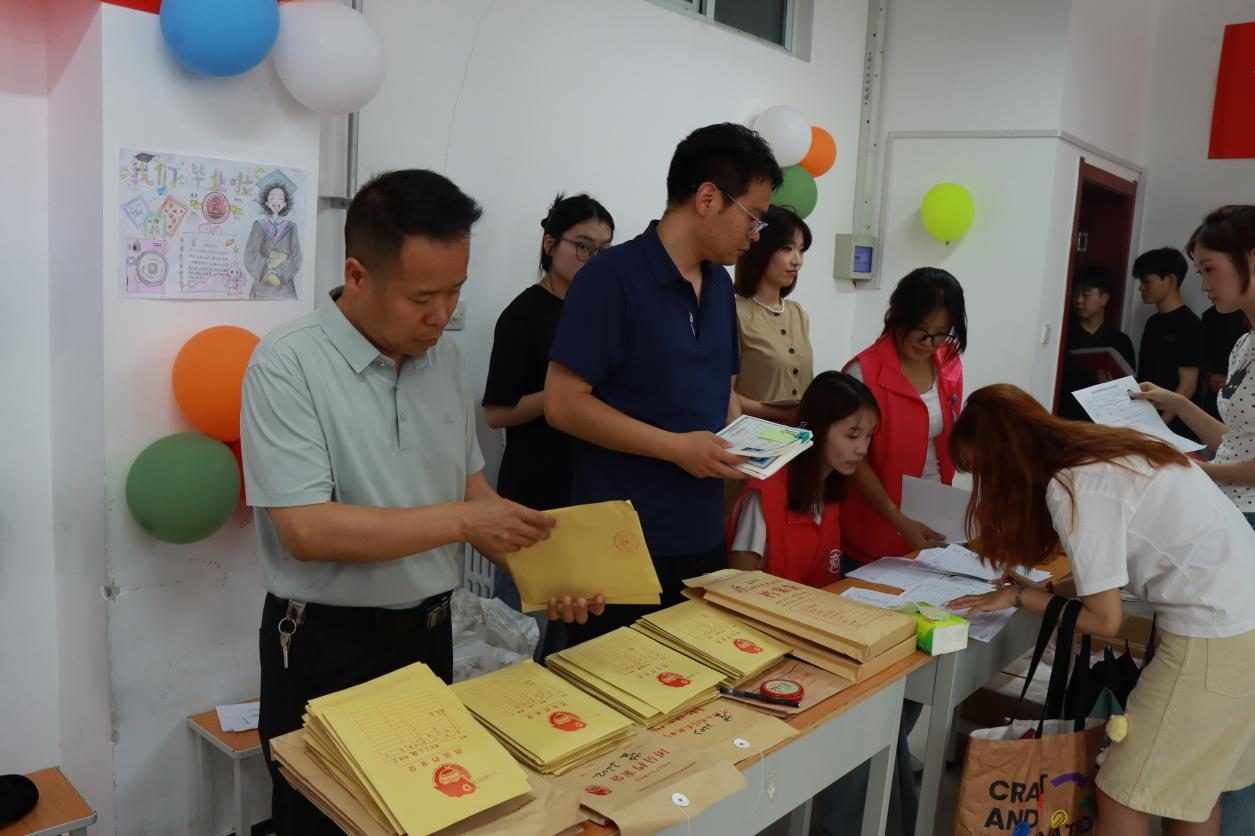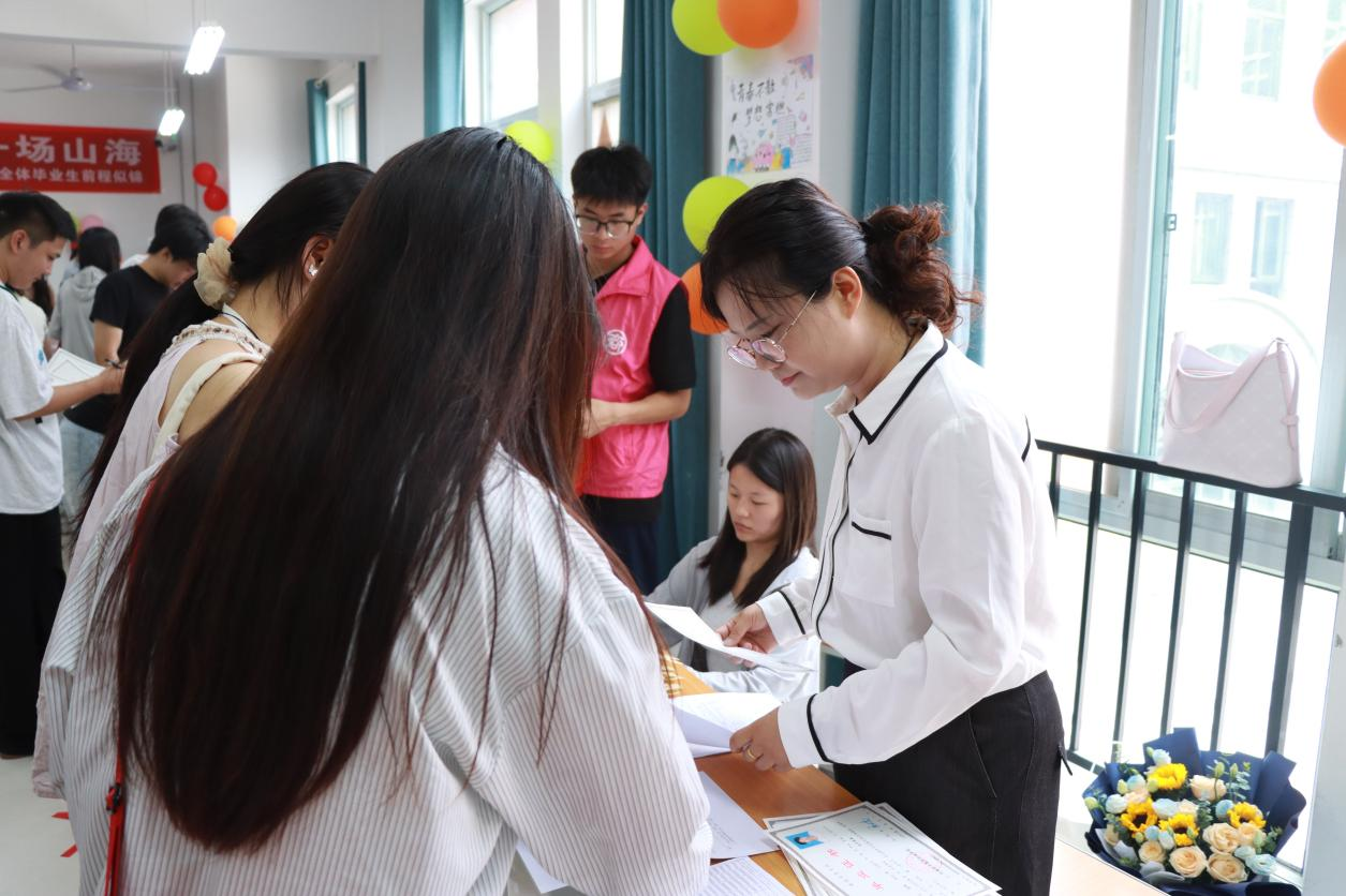 在毕业证领取现场,精心布置的签名墙上,毕业生们挥毫写下对未来的期许与对母校的祝福。一句句真挚的话语,一个个潇洒的签名,定格成独属于这个夏天的纪念。当他们从辅导员老师手中接过沉甸甸的毕业证书时,指尖触摸到的不仅是纸张的质感,更是知识与成长交织的硕果。老师们温暖的笑容、真挚的祝福,“毕业快乐,前程似锦”的话语,饱含着无尽的牵挂与期许,让这份毕业时刻更添一份温情。