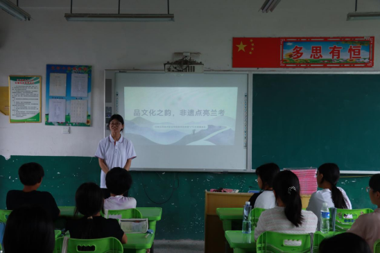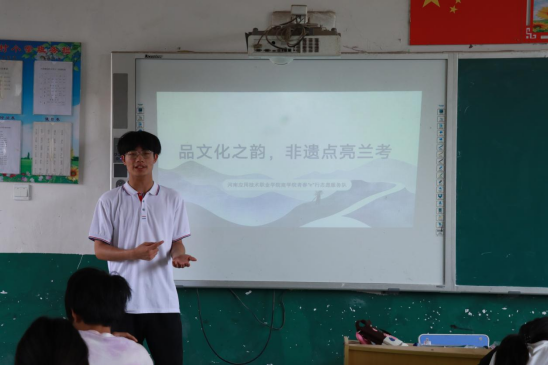 在文化传承与发展课程里,学生志愿者王雨亭和牛梓浩从中华优秀传统文化起源切入,融入兰考当地红色文化故事,激发孩子们对文化传承的兴趣与思考。