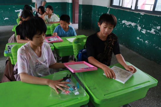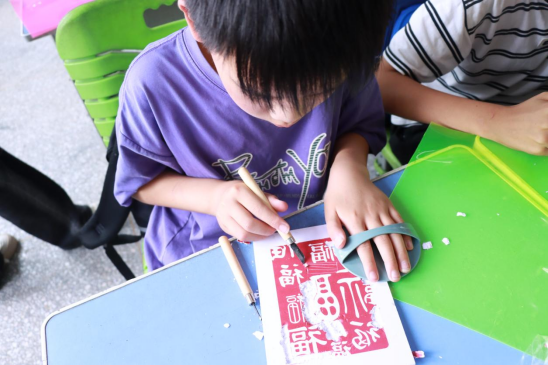 志愿者们带领五年级同学开展手工拓印和水拓画活动,拓印时与古老技艺对话,水拓画则让他们惊叹于水中纹理的奇妙。孩子们充分发挥想象力,将对美好生活的向往融入作品中,一张张稚嫩的脸上洋溢着创作的喜悦。