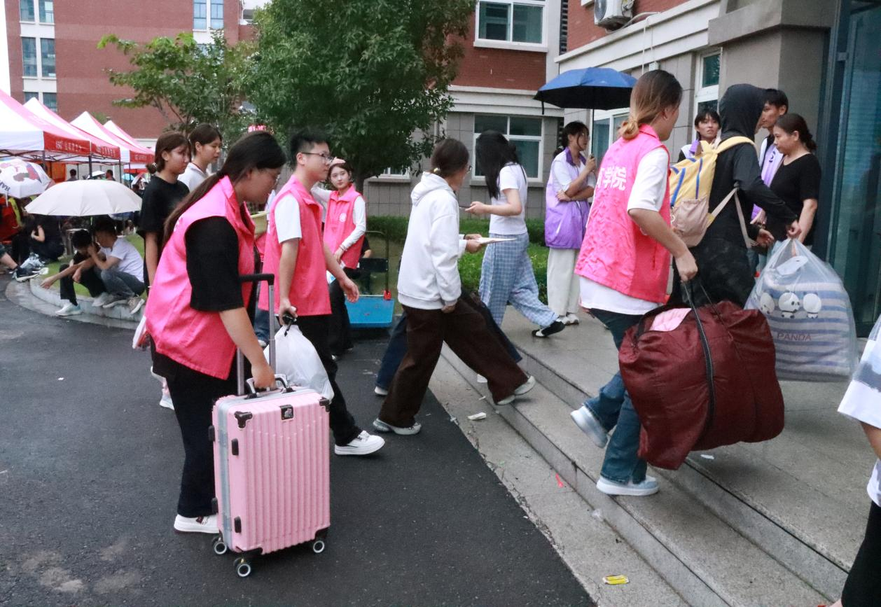 为让必赢76net线路官网迎新工作高效有序,早在开学前两周,青春 “e” 行志愿服务队的学生志愿者们就开启了 “备战模式”。迎新当天清晨 6 点,天刚蒙蒙亮,志愿者们就已在各自岗位就位。在校园大门口,志愿者们早早在岗位上蓄势待发准备迎接新同学;在操场报到处,志愿者们帮助新生核验身份信息,为新生同学们答疑解惑;校园主干道上、宿舍楼下,行李搬运队的志愿者们格外忙碌,他们推着小推车,主动接过新生手中的行李箱,一边帮忙搬运,一边热情地介绍校园:“前面那栋红色建筑是咱们必赢76net线路官网的教学楼;那边的食堂二楼有很好吃的面食……”不少新生家长看着忙碌的志愿者,纷纷感叹:“这些孩子太贴心了,第一次到学校也让我们感觉特别温暖!”