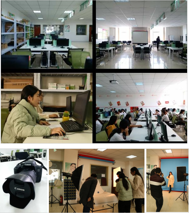建设有智慧门店实训室、数据分析运营实训室、电子商务实训室、市场营销实训室、物流实训室、网店运营实训室等10多个实训室,配备10多款实训教学软件,满足学生校内实训教学的需要,是集教学、培训、职业技能鉴定和技术服务为一体的专业化、多功能化实训中心。