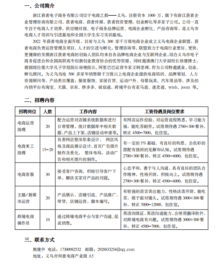 浙江获者电商招聘简章