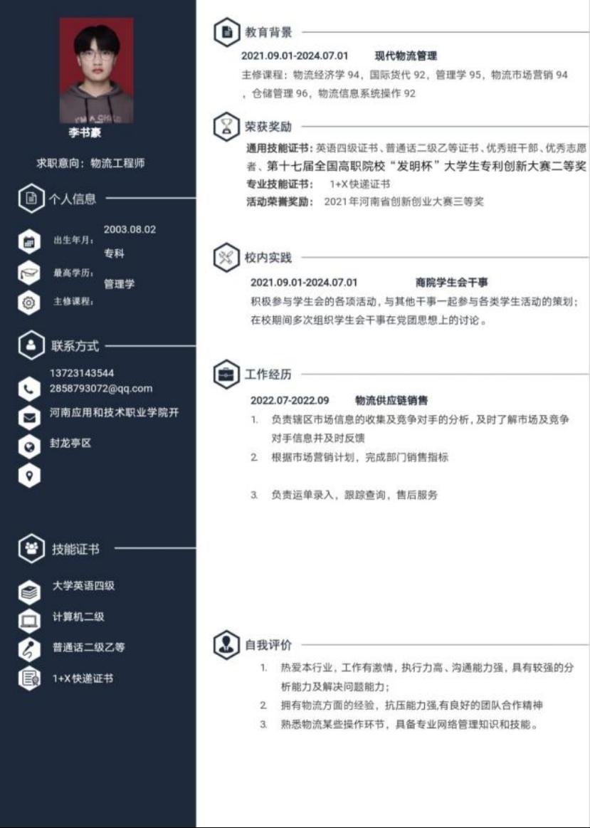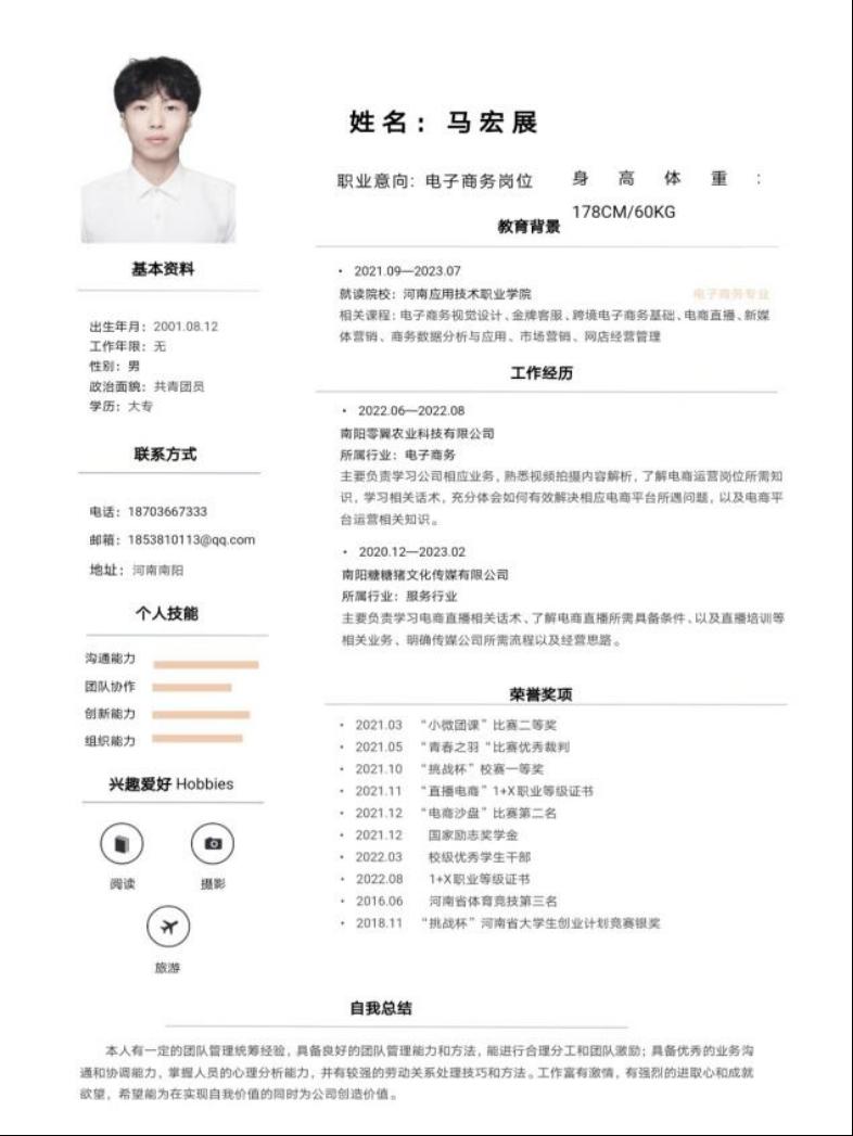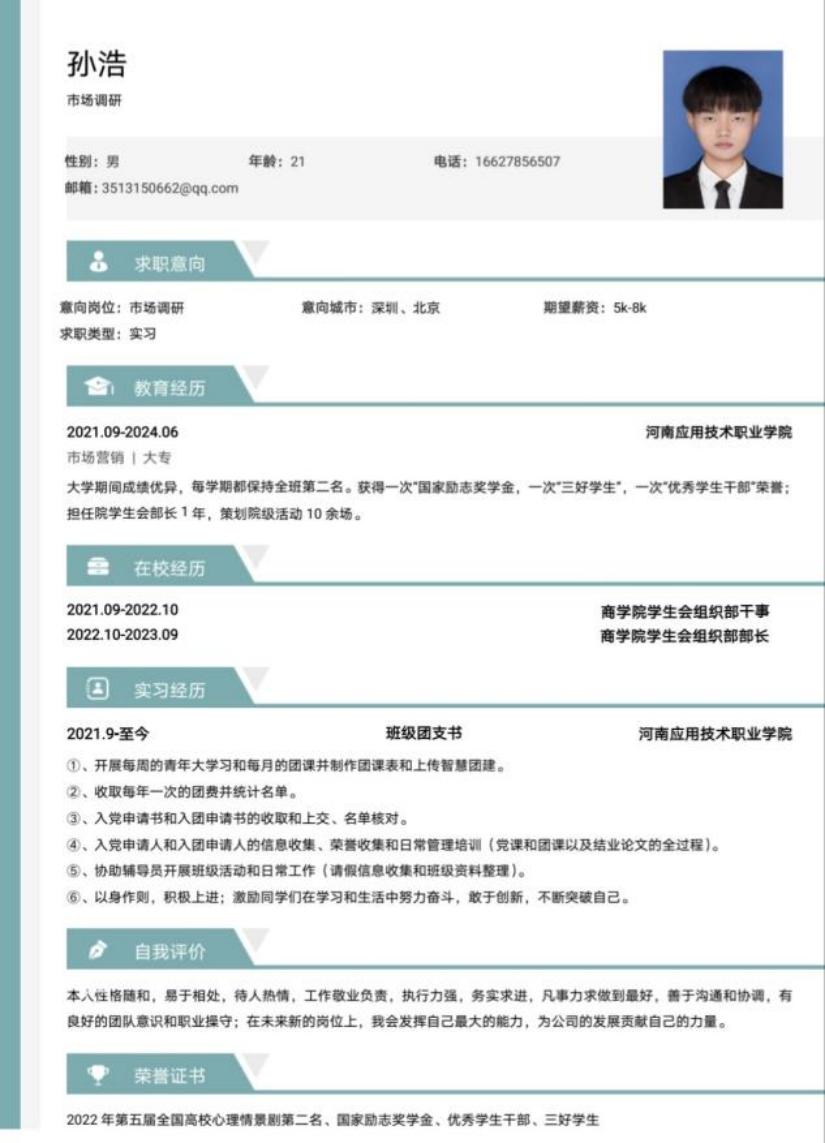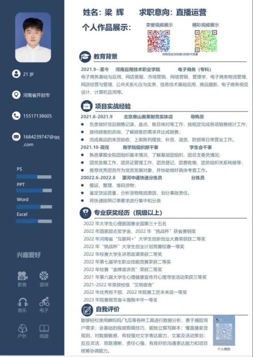 为帮助学生增强就业意识,普及就业技巧,增强就业技能,充分做好就业准备,必赢76net线路官网举办“第六届大学生简历设计制作大赛”,通过比赛大多数同学能够掌握简历设计及撰写要领,同学们的作品外观设计巧用心思,整洁美观又能凸显专业及个人特点。让我们一起来看看部分获奖者的优秀简历吧。