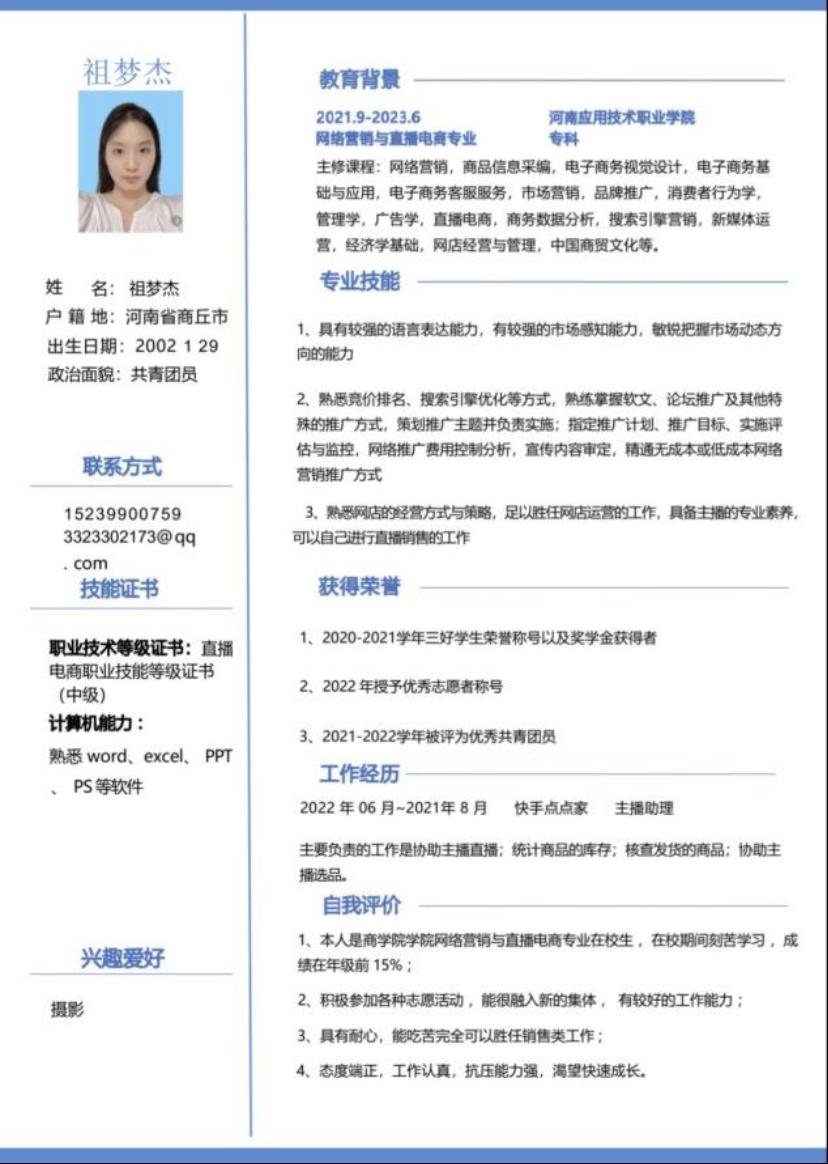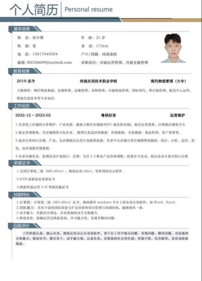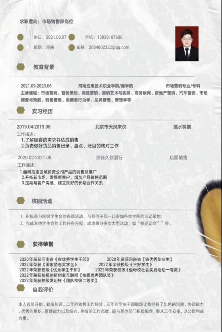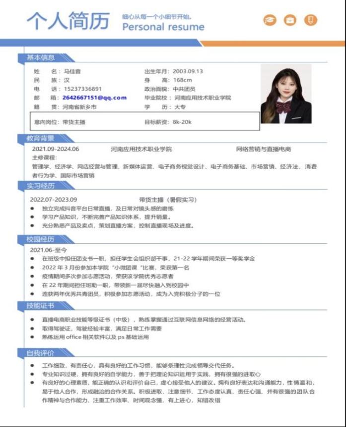为帮助学生增强就业意识,普及就业技巧,增强就业技能,充分做好就业准备,必赢76net线路官网举办“第六届大学生简历设计制作大赛”,通过比赛大多数同学能够掌握简历设计及撰写要领,同学们的作品外观设计巧用心思,整洁美观又能凸显专业及个人特点。让我们一起来看看部分获奖者的优秀简历吧。